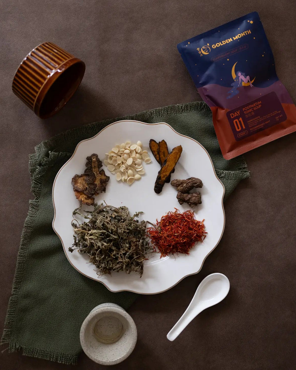The first days after birth are about gentle recovery. This stage focuses on clearing lochia, supporting uterine repair and encouraging milk flow. Warmth and nourishment help your body begin its path back to balance.